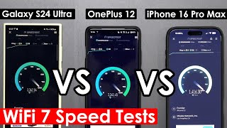 iphone 16 pro max vs oneplus 12 vs galaxy s24 ultra wifi 7 speed test showdown