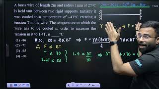 a brass wire of length 2 m and radius 1 mm at 27c is held taut between two rigid supports initially