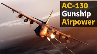 deadly ac 130 gunship in action firing all its cannons