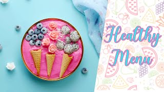 healthy food a raspberry smoothie bowl garnished with lots of fruit for a healthy breakfast