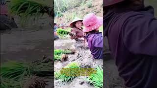 rice cultivation farmers transplanting seedlings in flooded fields